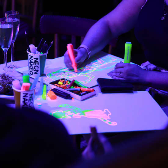 Oxford Circus Neon Life Drawing ? Model & Artist Experience Highlights ? Become a glowing model or express your creativity as an artist in this UV-lit life drawing experience. ? Experiment with neon body paint, luminous accessories, and exp...